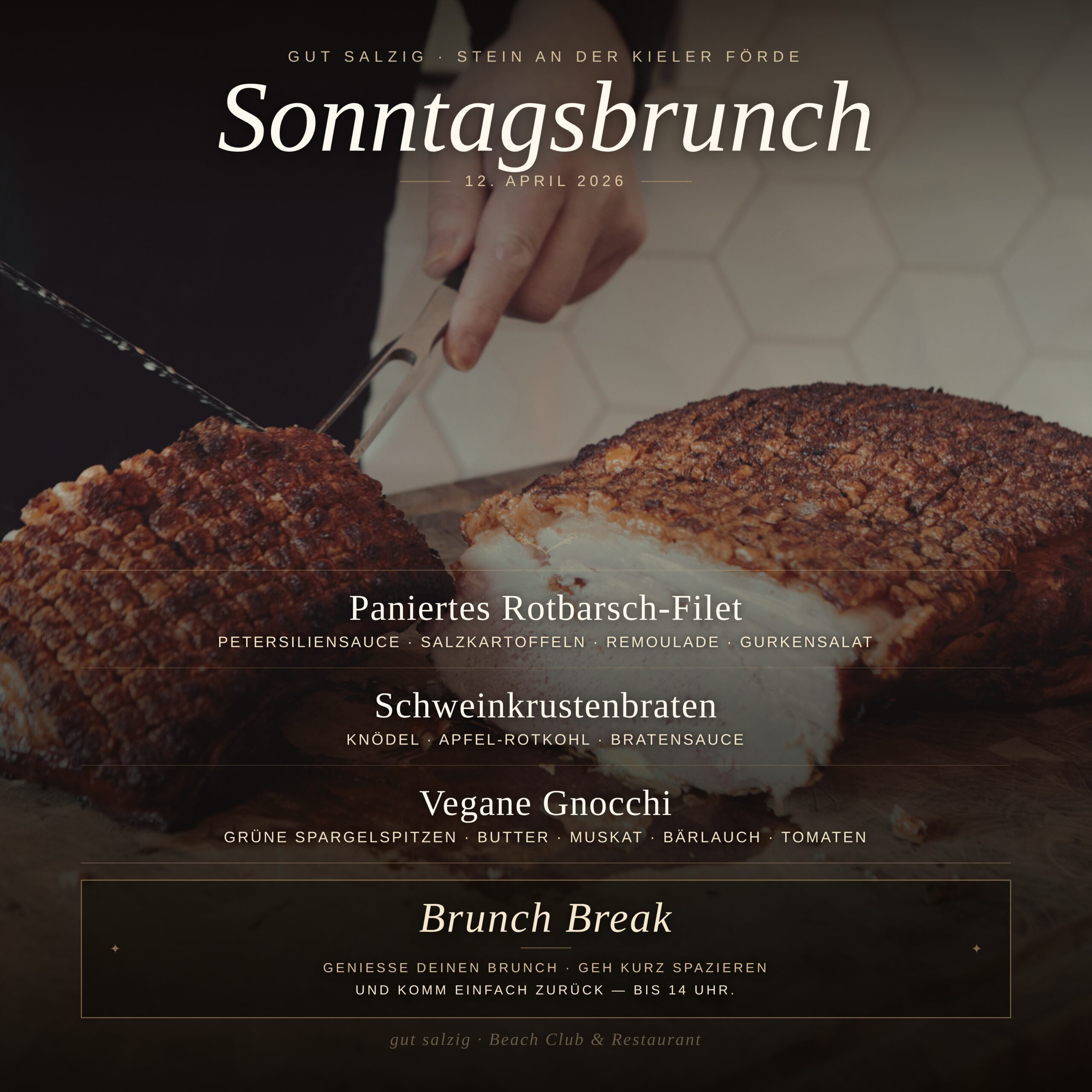 Genieß deinen Brunch, geh kurz am Strand spazieren – und komm einfach zurück. Bis 14 Uhr ist der Tisch deiner. Einmalig in der Region.